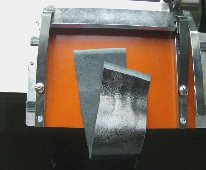 Possible to skive leather strap and jointed surface of materials easily with equally angle by sliding a table with fixed material. *Possible to attach to the standard machine after purchasing.