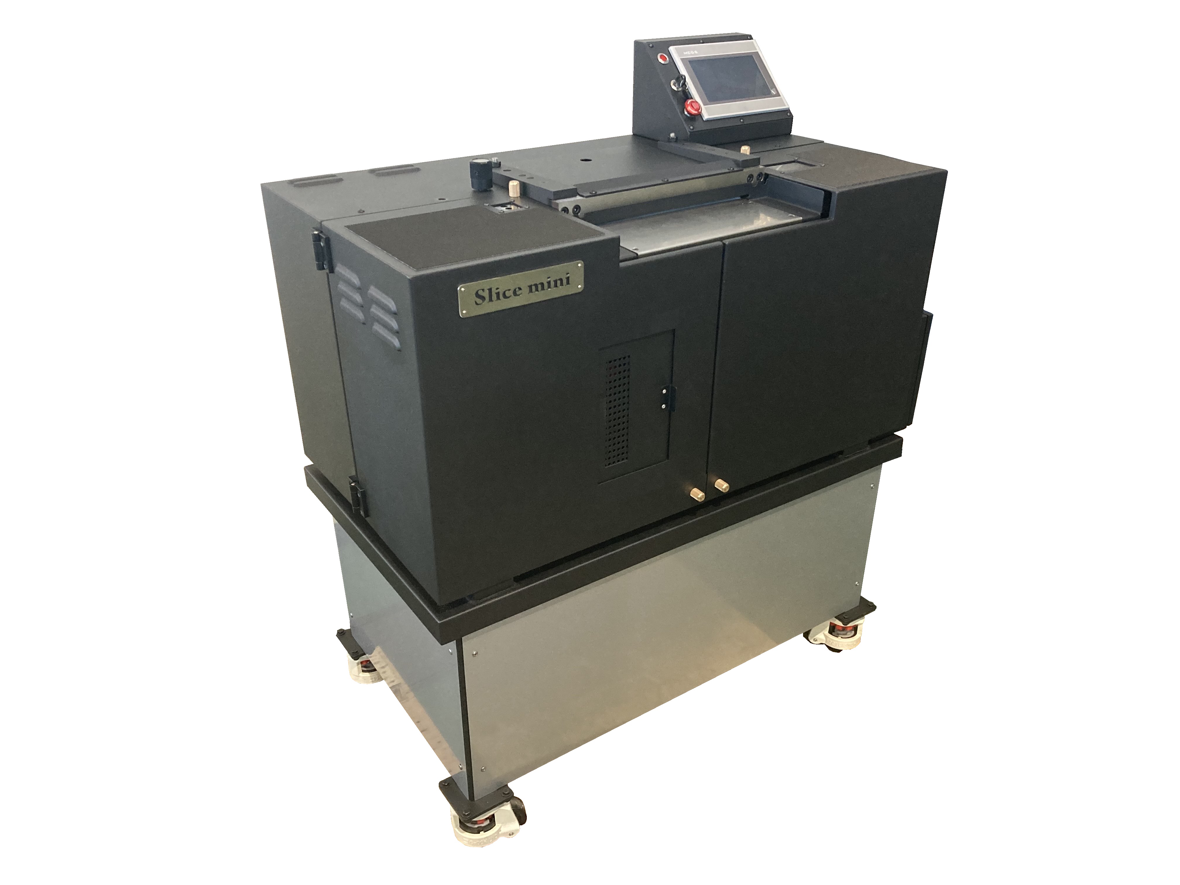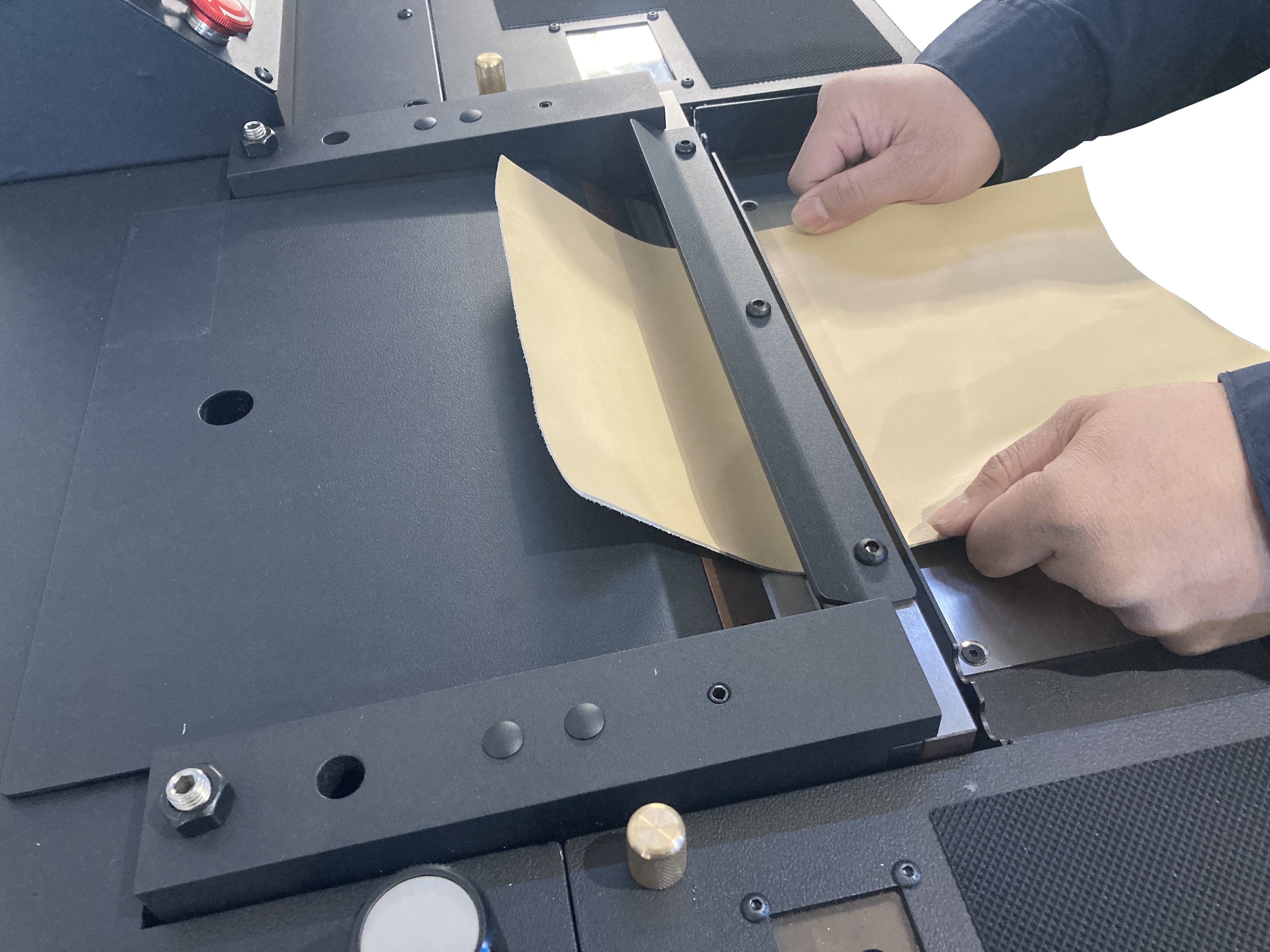 革や合皮を最大300mm幅で厚みを薄くスライスする機械
